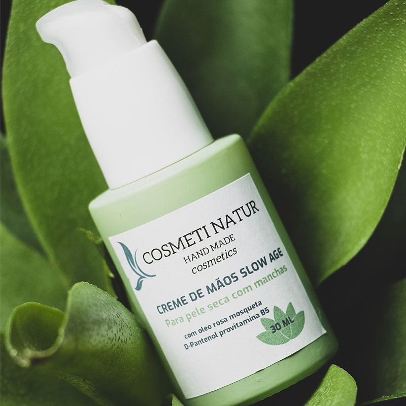 Creme de mãos anti-envelhecimento, para pele seca com manchas (melanose solar), Com óleo rosa mosqueta, e D- Pantenol (Provitamina B5).